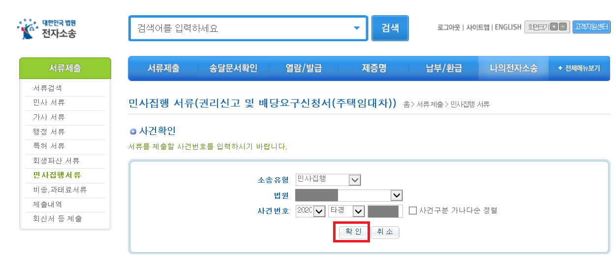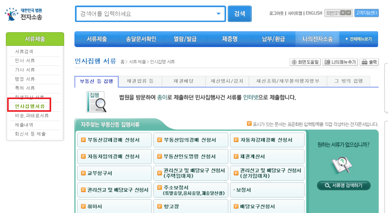 강제 경매가 진행 될 경우 권리신고 및 배당요구 신청서를 법원에 직접 방문하지 않고 전자소송 사이트를 이용하여 서류 제출합니다.