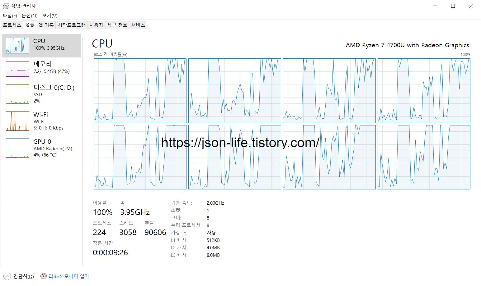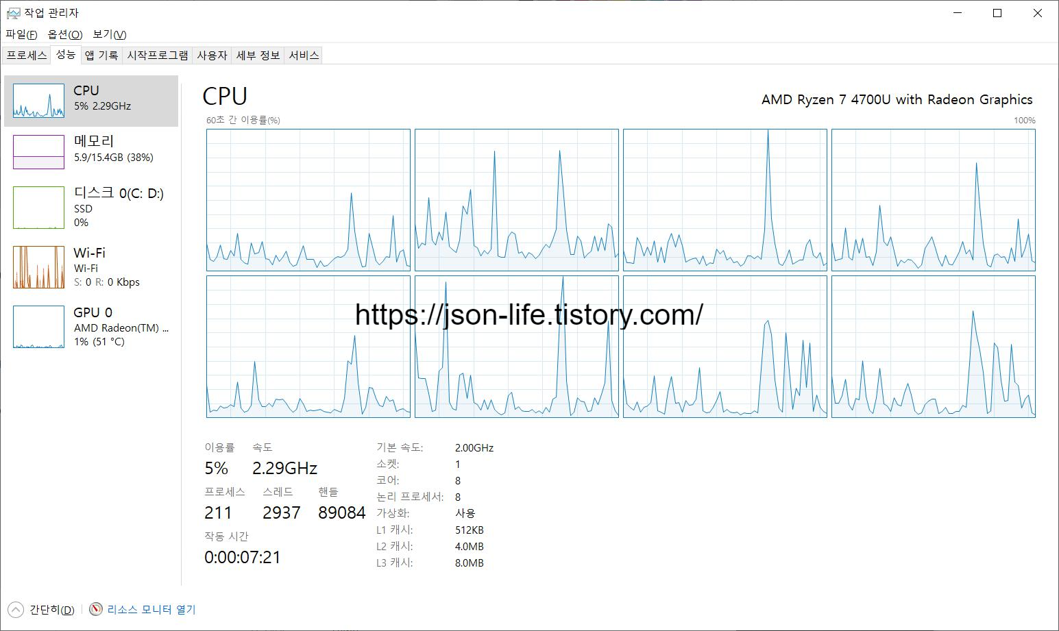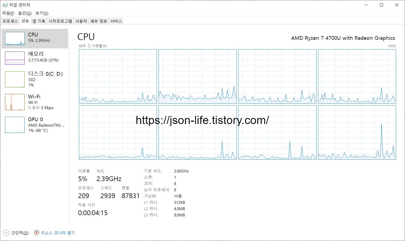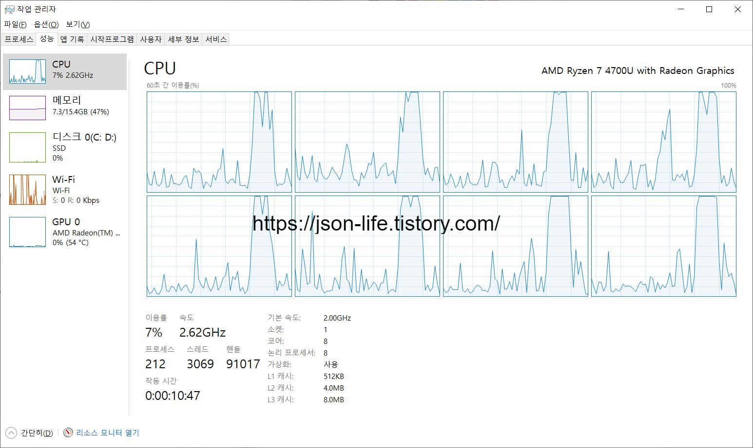 > CPU : 8코어 8스레드, 기본 클럭 2.0, 최대 부스트 클럭 4.1
