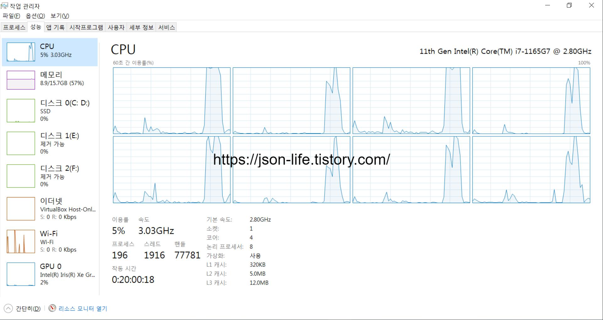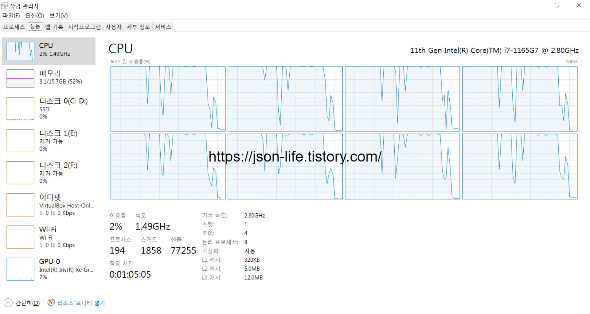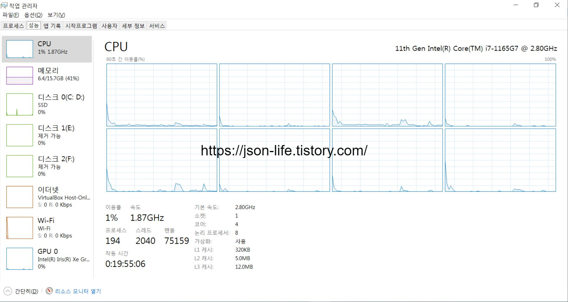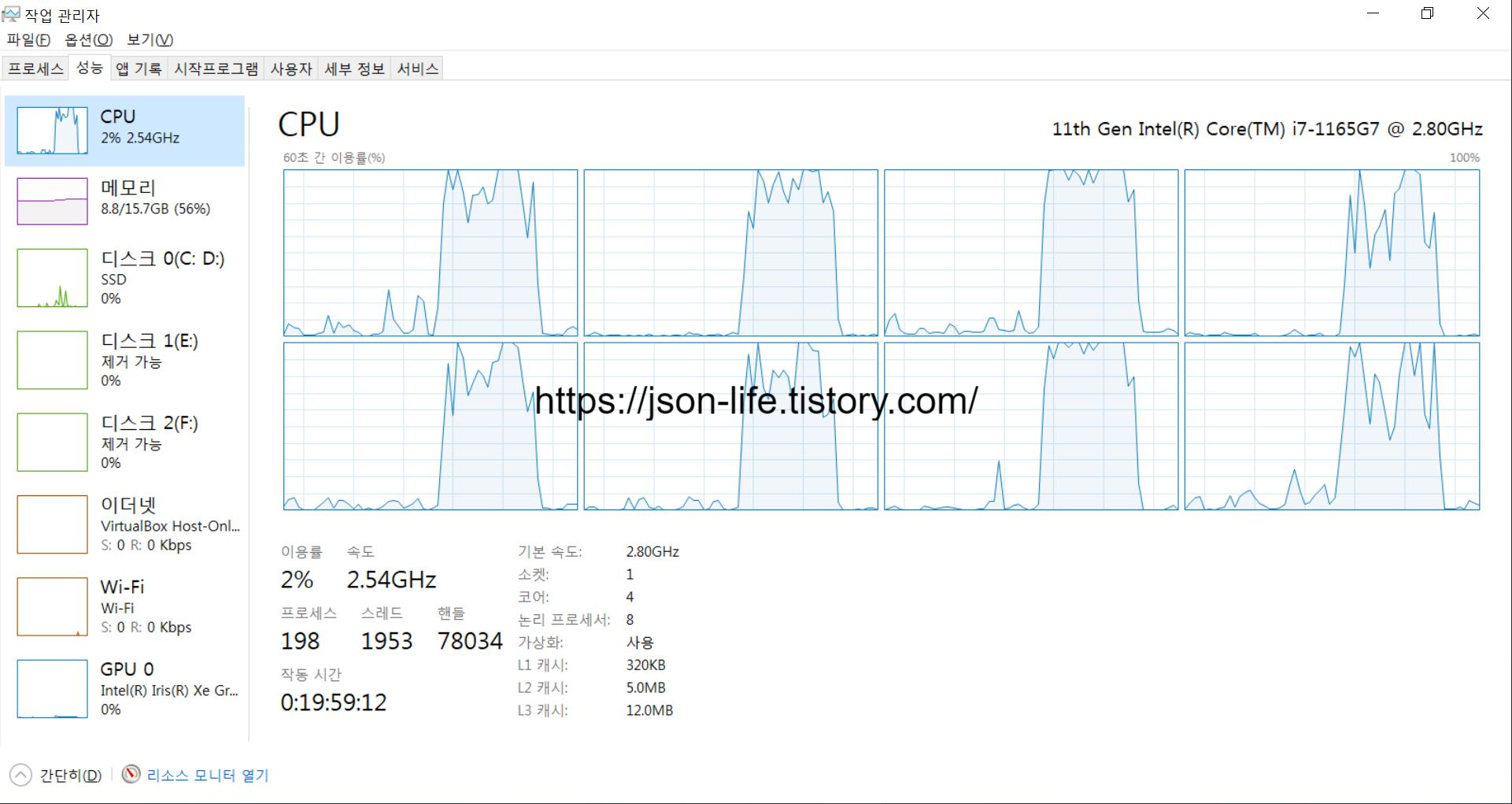 > CPU : 8코어 8스레드, 기본 클럭 2.0, 최대 부스트 클럭 4.1
