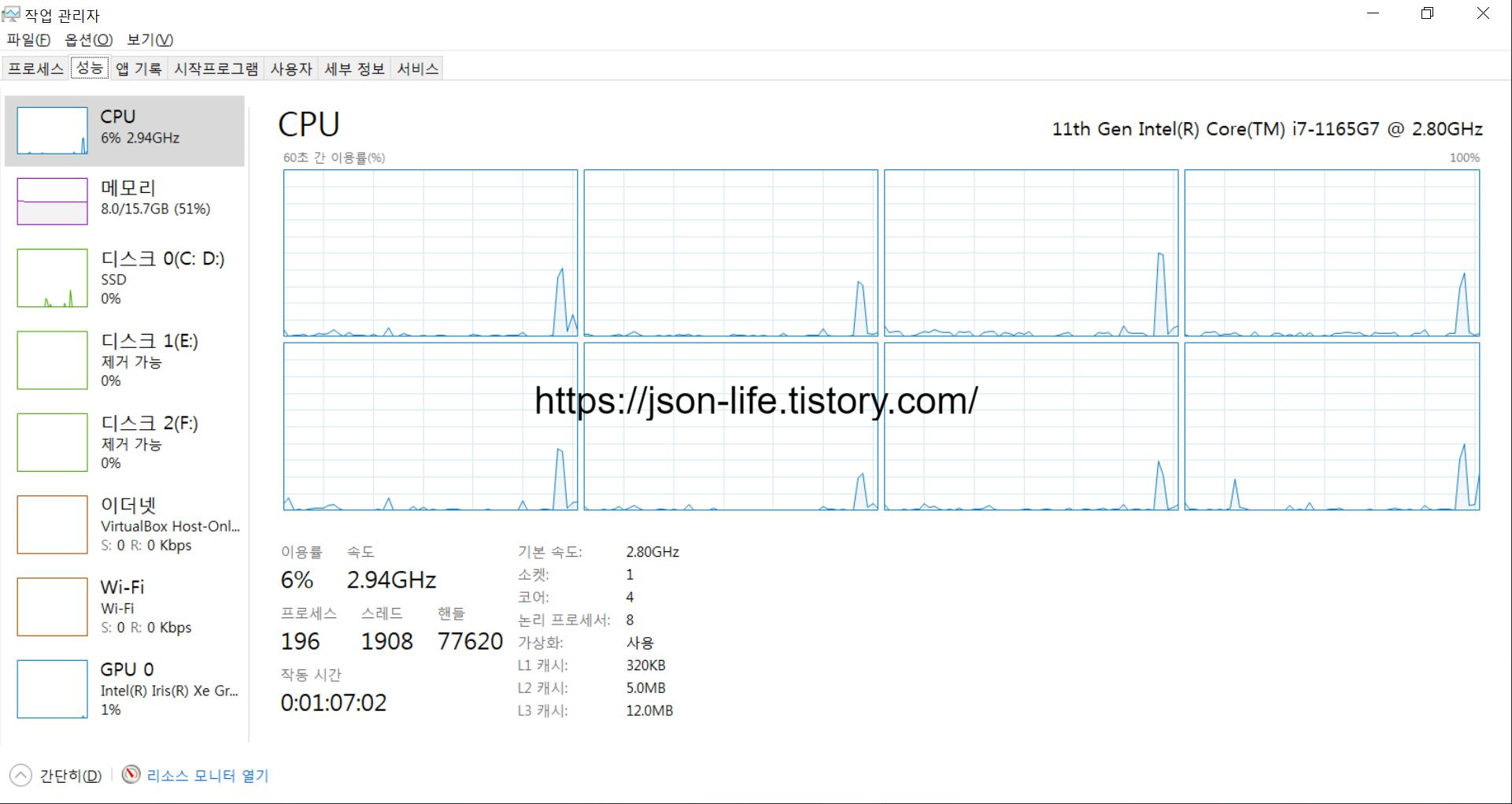 > CPU : 4코어 8 스레드, 기본 클럭 2.7, 최대 부스트 클럭 4.7
